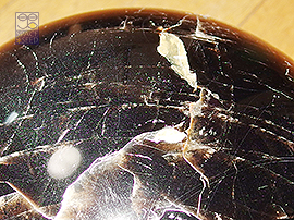 このモリオン丸玉は、大型で表面に白い模様が出ている濃い色合いです。